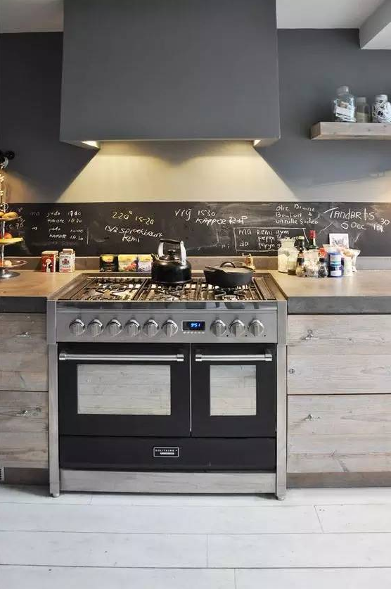 廚房也可以弄成黑板漆,經常忘記炒菜的先后順序?經常忘記烤箱的溫度火候?為了孩子和愛人不再被黑暗料理困惑,記性不好的主婦們,一定要一面這樣的小廚房黑板墻啊!